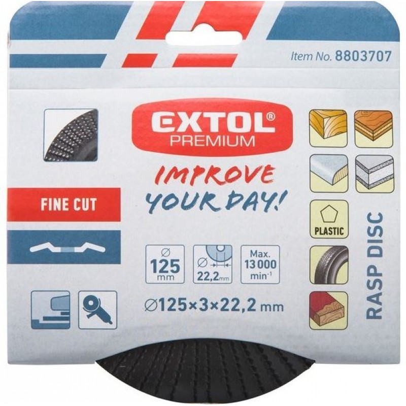EXTOL PREMIUM kotúč rašplový na drevo, 125x3x22,2mm, jemný sek 8803707