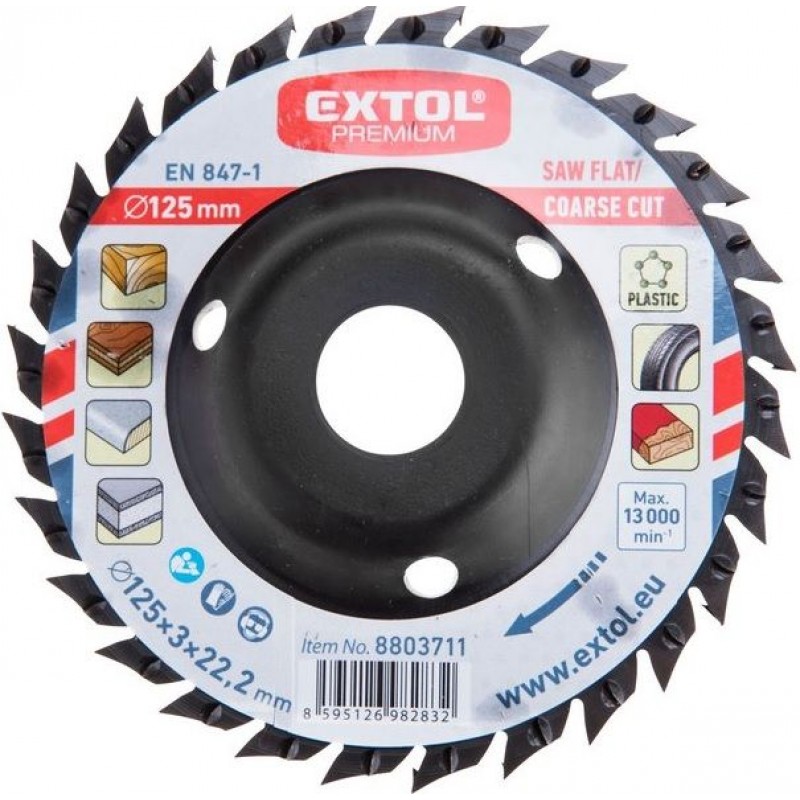 EXTOL PREMIUM kotúč rašplový / pílový na drevo, 125x3x22,2mm, hrubý sek 8803711