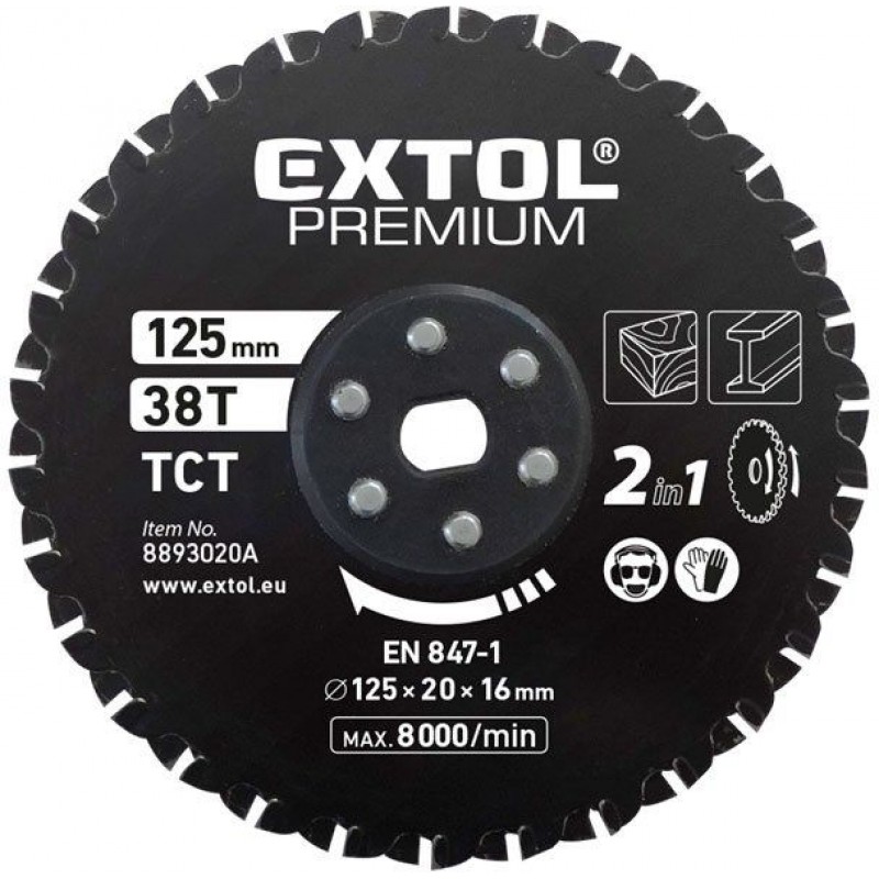 EXTOL PREMIUM kotúč rezný na kov a drevo 125x20x16mm, 38T, pre 8893020 8893020Apre 8893020