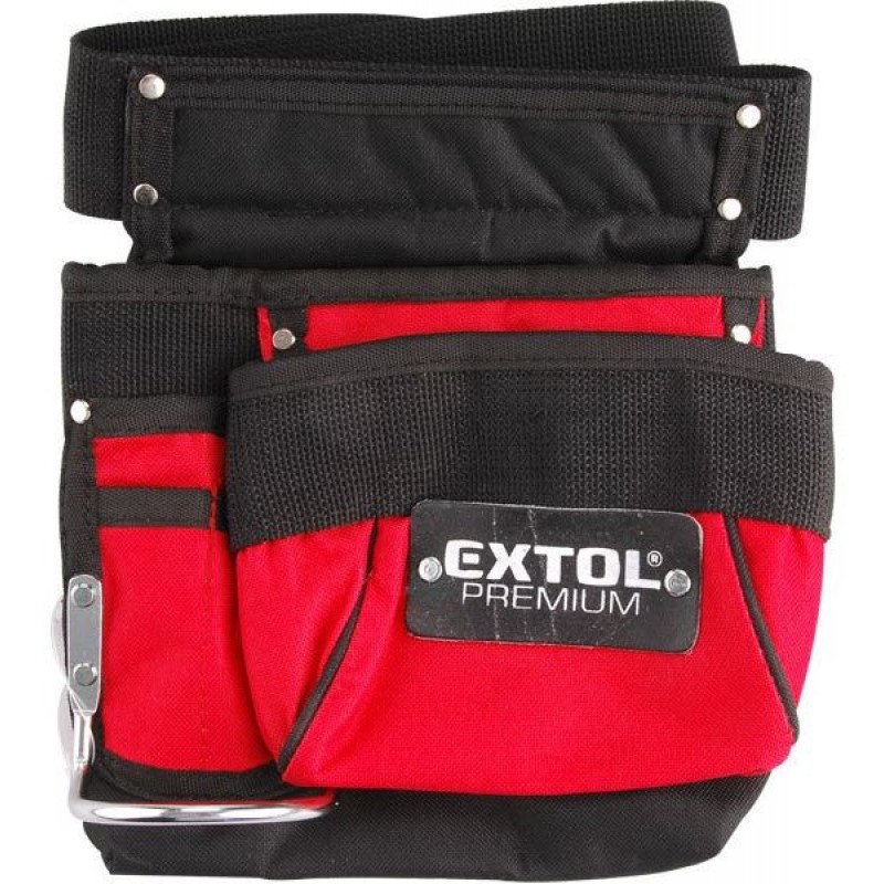 EXTOL PREMIUM pás na náradie, 3 vrecká, nylon 88580013 vrecká (1 veľká, 1 stredná, 1 malá), držiak na kladivo, úchyty pre ceruzku alebo skrutkovač
