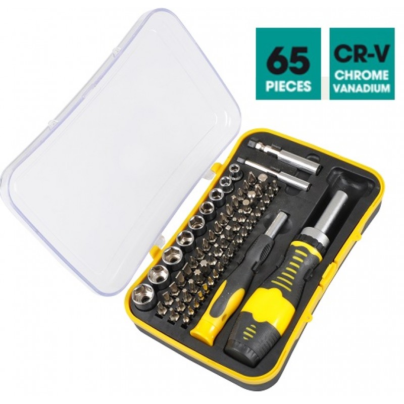 Veľmi sofistikovaná sada bitov 4 mm a 6 mm sa skrutkovače z CR-V materiáli, ktorý predstavuje vyššiu pevnosť materiálu a zaisťuje tak menšie opotrebovanie. Sada obsahuje širokú variáciu bitov, ktoré možno využiť pre veľmi jemnú hodinársku prácu až po prácu s bežnou veľkosťou skrutiek či skrutiek. Veľký skrutkovač s ergonomickou rukoväťou a račňou sa tiež pýši úložným priestorom na náhradné bity pre prípad, že na zostavenie skrinky postačí niekoľko príslušných bitov a nie je potrebné tak so sebou nosiť celú sadu. Naopak malý skrutkovač na bity s rozmerom 4mm poslúži k veľmi jemným operáciám s malými skrutkami za pomocou točne na ukazovák. Sada tiež obsahuje nadstavce od 5mm do 13mm na jednoduchšie pritiahnutie matky ku skrutke.