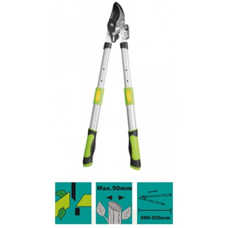 Teleskopické nožnice na konáre sa šmykovými strihacími čepeľami, ktoré dokážu ustrihnúť vetvy hravo do 40 mm. Komfortu strihanie veľmi pomáha dĺžka nožníc 680 až 920 mm a tiež predovšetkým pákový systém na strihacie hlave uľahčujúci strih aj hrubších konárov. Ergonomické úchyty s pogumovaným povrchom zaručí neskluznost aj námahou vlhších dlaňou.