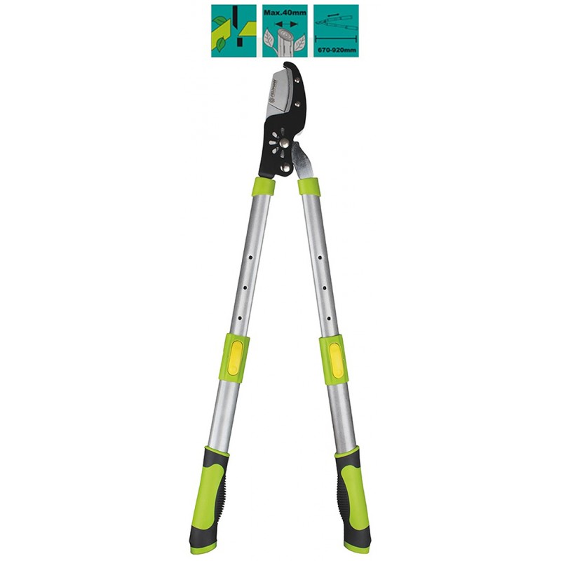 Teleskopické nožnice na konáre s klinovou strihacie čepeľou, ktorá dokáže ustrihnúť vetvy hravo do 50 mm. Komfortu strihanie veľmi pomáha dĺžka nožníc 680 až 920 mm a tiež klinový strihový systém na strihacie hlave uľahčujúci strih hrubších aj suchých konárov. Ergonomické úchyty s pogumovaným povrchom zaručí neskluznost aj námahou vlhších dlaňou.