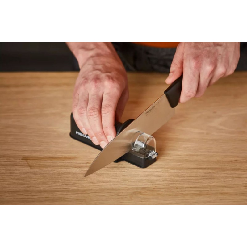 - Určený pre nože s uhlom ostria 30° ± 4°, najmä rady Fiskars Folken, Functional Form, Edge a Essential