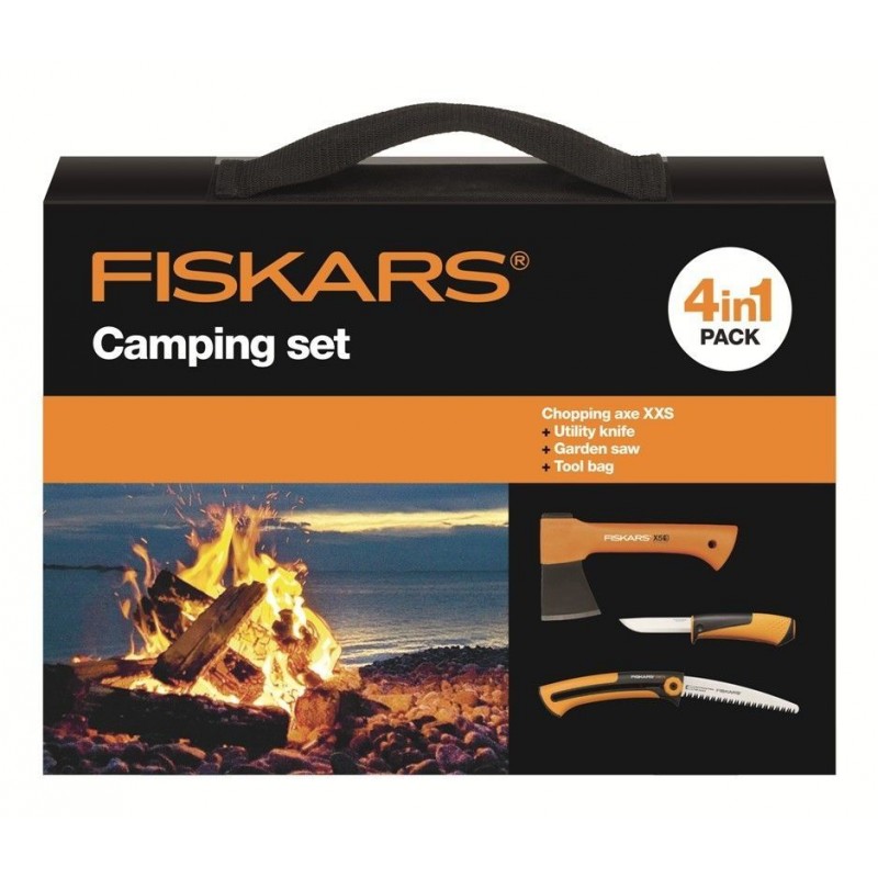 Kempingová Fiskars 1025439, sekera + nôž + pílka - skvelá sada pre pobyt v prírode a kempovanie.Sada kempingové obsahuje: