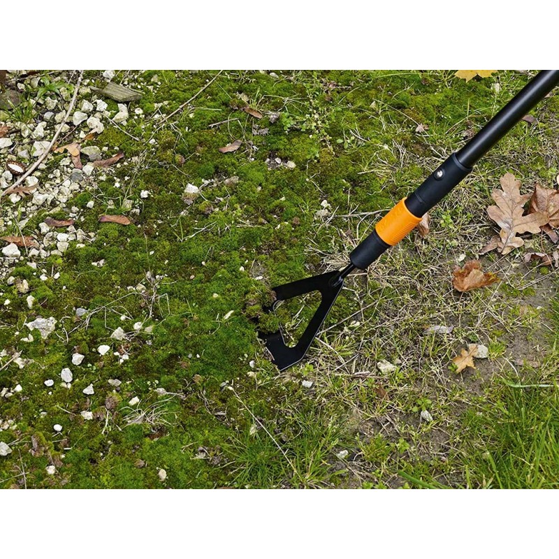 Multifunkčná holandská motyčka Fiskars na úpravu pôdy a odstraňovanie machu. Používa sa s násadami QuikFit™, ktoré majú unikátny automatický dvojitý zamykací systém - víťaz ocenenia Red Dot Award.