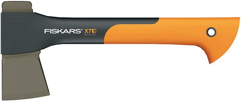 Fiskars X7 je všestranná sekera pre outdoor, kemping, alebo turistiku. Ľahko sa skladuje a je vhodná ako pohotovostné náradie v aute, či na lodi. V aute je pripravená na okamžité použitie pri výletoch do prírody či na dovolenke. Je malá, ľahká a je extrémne účinná. Má novú vylepšenú geometriu čepele, nové označenie viditeľné na porisku, nový typ rukoväte. Nové porisko z trvanlivého polyamidu FibreComp™ vystuženého sklennými vláknami, zakončené mäkkým, protišmykovým oranžovým elastomerom. Porisko je odolné proti vlhkosti, suchu aj veľmi studenému počasiu. Ostrá čepeľ zo špeciálnej uhlíkovej ocele je kovaná v zápustke a jednoducho sa ostrí. Ostrie je dôkladne naostrené v 30° až 40° uhle do konvexného tvaru, je tak menej citlivé na poškodenie. Čepeľ má dva druhy tvrdosti, telo čepele je zakalené na 48HRC a ostrie na 55HRC. Čepeľ je potiahnutá vrstvou PTFE, ktorá znižuje trenie, maximálne zvyšuje účinnosť a zároveň chráni čepeľ pred koróziou. Špeciálna konštrukcia spojenia poriska s čepeľou zaisťuje, že sa nikdy nezošmykne. FISKARS dáva dvojitú záruku na sekery počas 10 rokov – na spojenie poriska s čepeľou a na porisko. Pri práci dodržiavajte zásady bezpečnej manipulácie. Používajte ochranné okuliare.Rada sekier Fiskars X je držiteľom ocenenia Red Dot design award - best of the best 2010.
