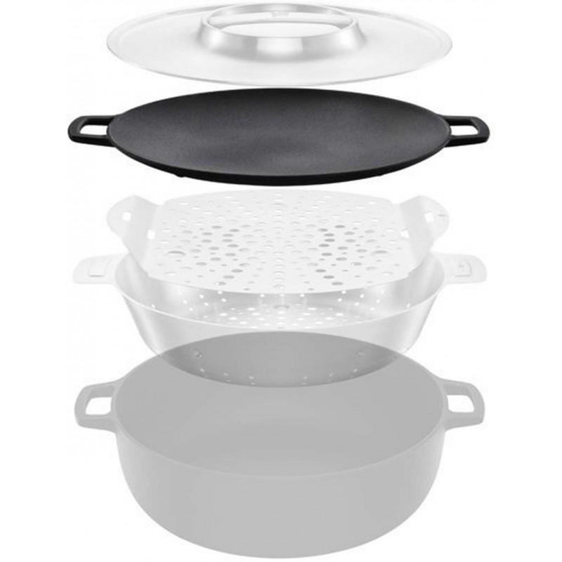 • Odolný liatinový tál je ideálny na prípravu palaciniek, rýb alebo zeleniny na grile alebo na otvorenom ohni