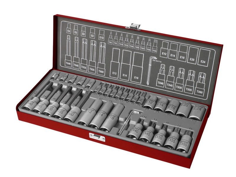 FORTUM kľúče nástrčné a zástrčné TORX, sada 35ks 1/4", 1/2" 4700009