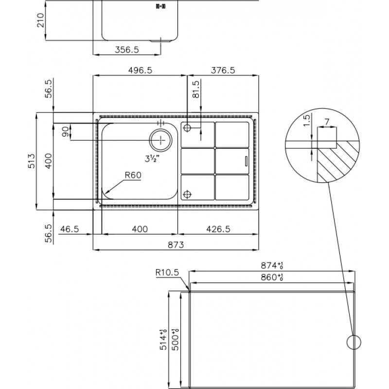 FOSTER 3000 nerezový drez, FM ľavý 1384 062- Rozmer: 860x500 mm