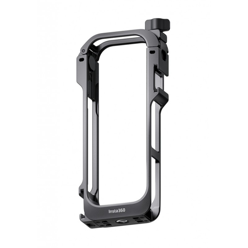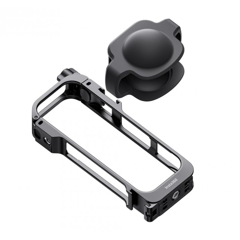 Ľahký kovový rámik na príslušenstvo pre kameru Insta360 X5 poskytuje úplnú ochranu kamery. Má rýchloupínací bod, dva držiaky na príslušenstvo a závity 1/4". Súčasťou je aj kvalitná ochrana mikrofónu pre čistý zvuk aj pri veterných podmienkach.