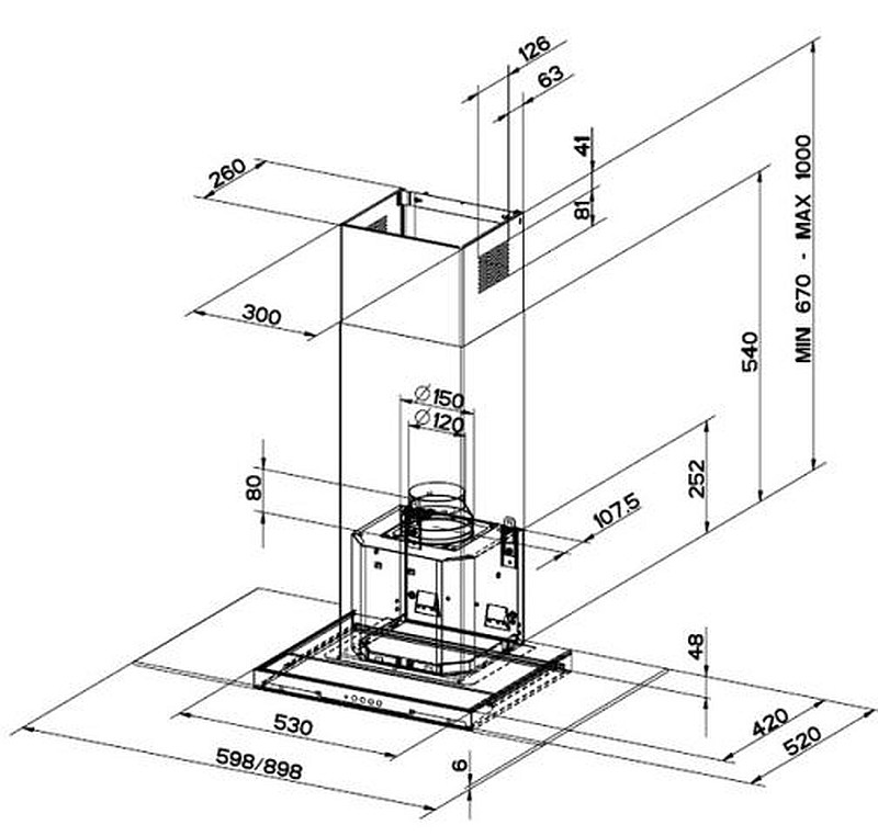 • Montážne šírka: FGL 9015 BK XS: 90 cm