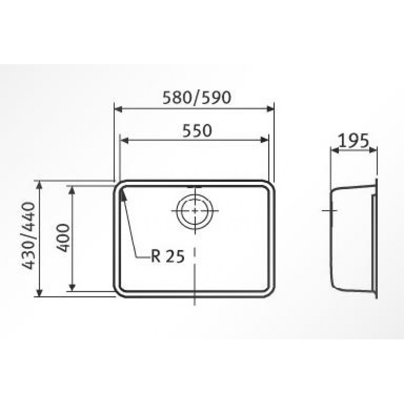 Franke Kubus KBX 210/610-55, 580x430 mm, nerezový drez 127.0039.227Rozmery: 580 × 430 mm