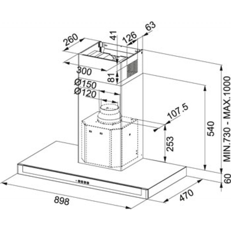 Priemer odťahu : 150 mm ( 120 mm adaptér )