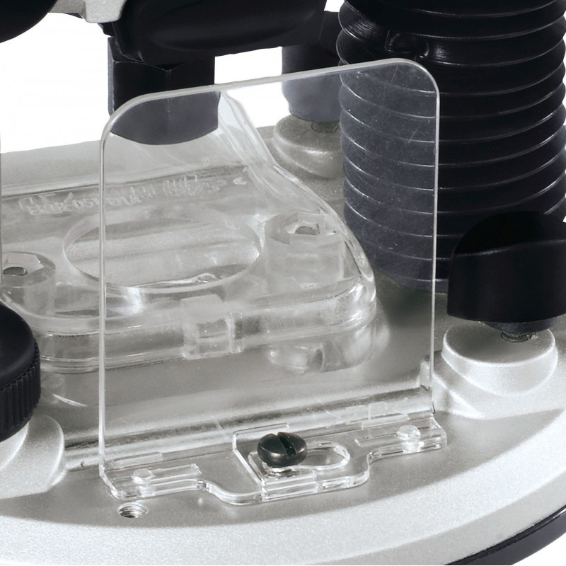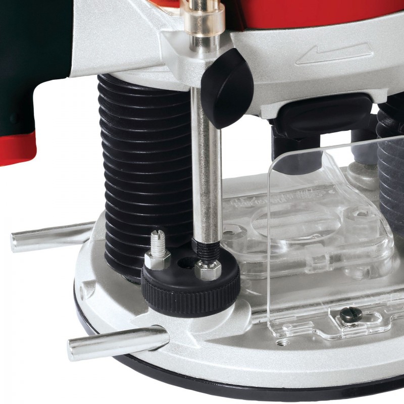 Horná frézka TE-RO 1255 E je vysoko kvalitné, výkonné zariadenie, ktoré odborníkovi umožňuje aj najnáročnejšie frézovanie masívneho dreva, preglejky a drevovláknitých dosiek. Hĺbku frézovania možno jednoducho predvoliť pomocou revolverového dorazu a rovnako presne doladiť pomocou jemného nastavenia hĺbky. Dodatočnú ochranu poskytuje kryt proti trieskam. Vďaka elektronickej regulácii možno otáčky frézky TE-RO 1255 E optimálne prispôsobiť požiadavkám materiálu a frézy. Aretácia vretena umožňuje rýchlu a jednoduchú výmenu nástroja, zatiaľ čo dobre vyvážená konštrukcia zaisťuje stabilitu zariadenia. Klieština poskytuje flexibilitu tým, že umožňuje použitie nástrojov s priemerom stopky 6 mm alebo 8 mm. Plastová vložka na podstavci chráni povrch obrobku. Vďaka ergonomickým rukovätiam s mäkkým úchopom poskytuje horná frézka príjemné a bezpečné držanie. Po dokončení práce možno prívodný kábel upevniť pomocou držiaka kábla, zariadenie je tak okamžite prehľadne uložené. Dodávku hornej frézky dopĺňa kružidlo, paralelný doraz a kopírovacie puzdro.