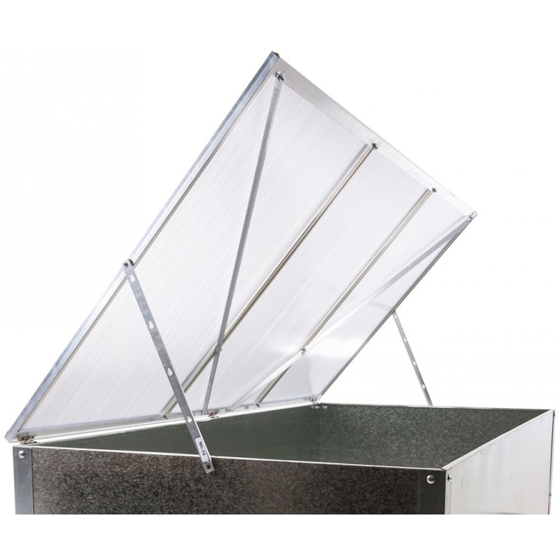 Horný alumíniový rám s výplňou z kvalitného 4mm polykarbonátu vám pri sadbe a starostlivosť o zasadené rastliny umožní pohodlný prístup vďaka variabilnému nastavenie v požadovanej polohe.