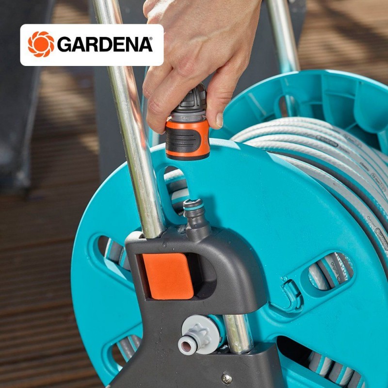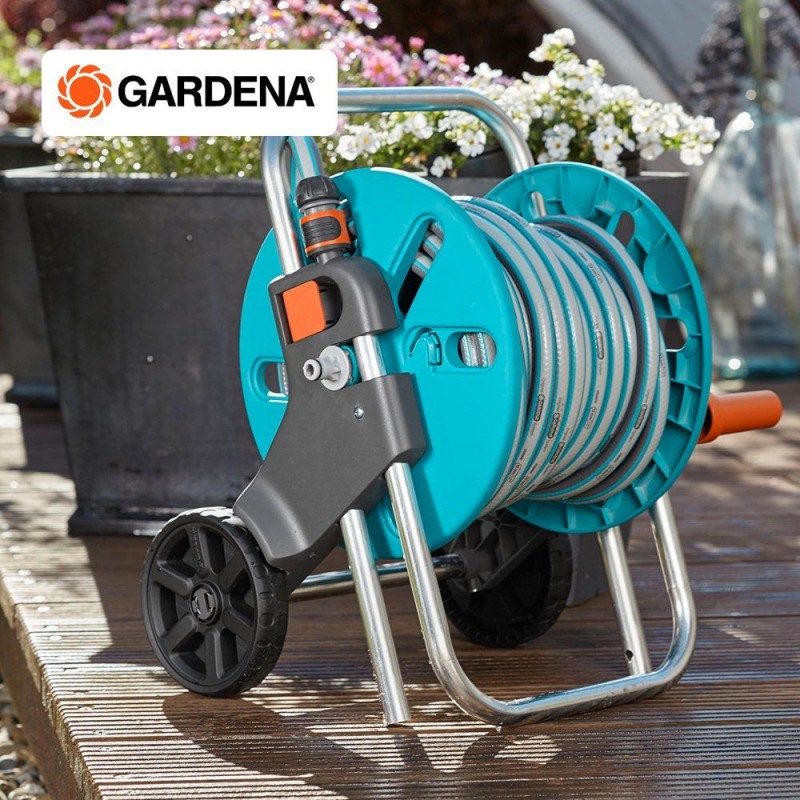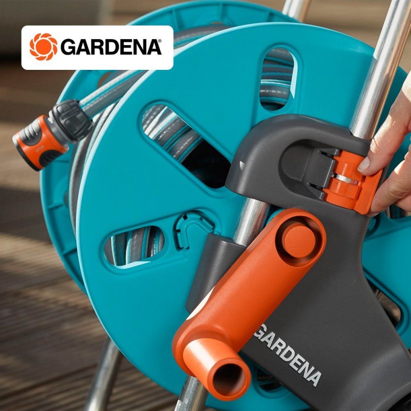 Vďaka stabilnej konštrukcii, veľkej pevnej kľuke a výškovo nastaviteľnému rámu ponúka navijak na hadicu s vozíkom pohodlnú manipuláciu aj jednoduché navíjanie hadice po zalievaní. Špeciálne pripojenie hadice pod uhlom zabraňuje jej zalamovaniu a zabezpečuje plynulý prietok vody. Vozík je navyše vybavený ochranou proti mrazu, takže ho možno bez obáv používať počas celej záhradnej sezóny.