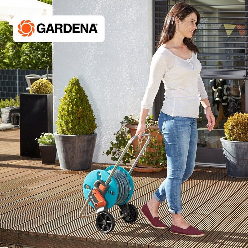Gardena AquaRoll S Set vozík na hadicu je praktický vozík na záhradnú hadicu, ktorý uľahčuje zavlažovanie záhrady a zároveň umožňuje prehľadné skladovanie hadice. Tento Gardena vozík na hadicu je dodávaný ako kompletná súprava s 20 m hadicou 13 mm (1/2"), čistiacim postrekovačom a systémovými dielmi Original GARDENA System, takže je pripravený na okamžité použitie.