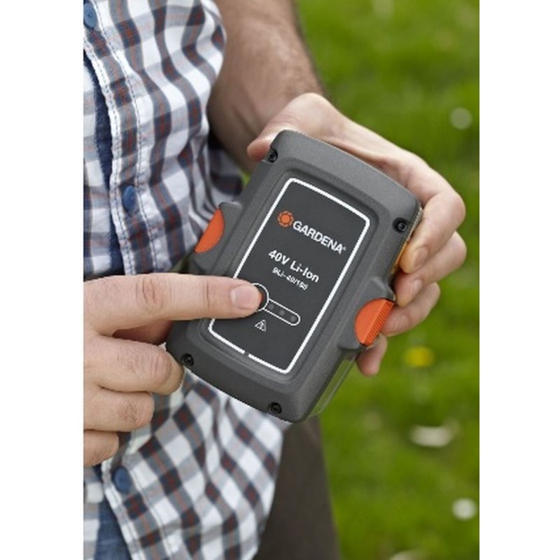 Silný a spoľahlivý zdroj energie s lítium-iónovými akumulátorovými článkami, ktoré vyžadujú iba jednoduchú údržbu. Akumulátor možno rýchlo nabíjať kedykoľvek bez pamäťového efektu. LED displej poskytuje informácie o úrovni nabitia akumulátora. Vhodné na použitie u GARDENA akumulátorových kosačiek na trávu PowerMax ™ Li-40/32 a PowerMax ™ Li-40/41.parametre: