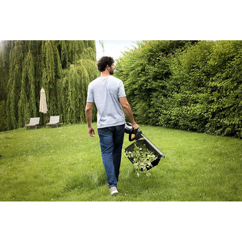 • Vďaka tomu je strihanie strany živého plota obzvlášť čisté, pretože odrezky pristávajú priamo vo vreci, a nie na zemi.