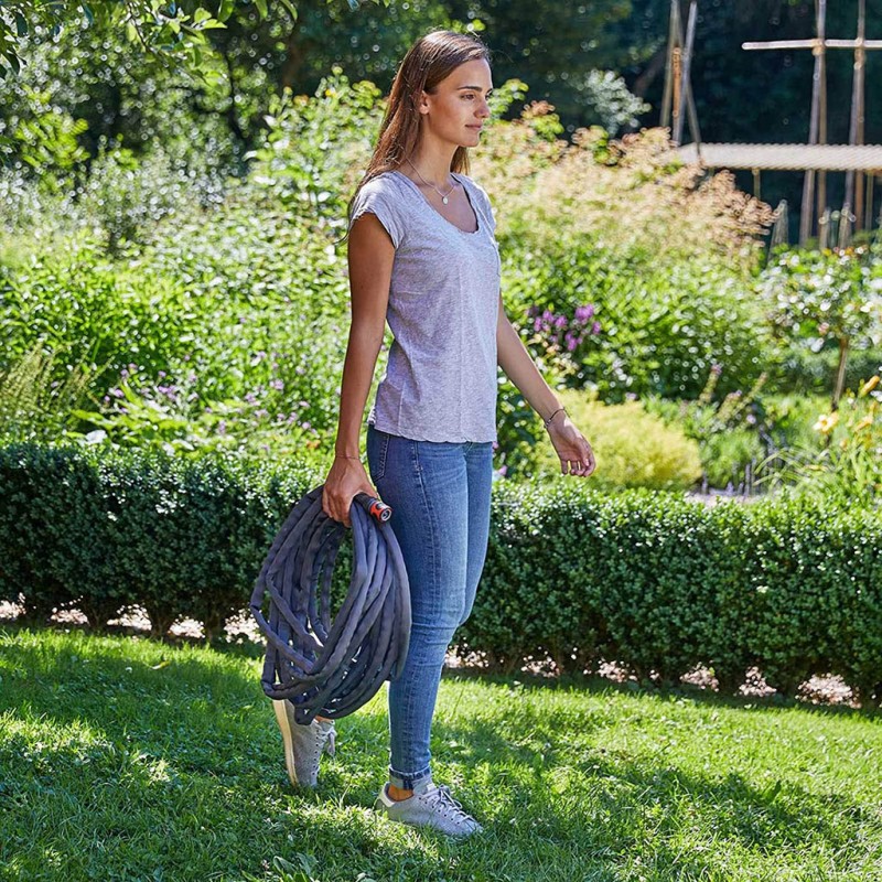 S GARDENA textilnou hadicou Liano, vyrobené z vysoko odolnej textílie, sa veľmi pohodlne manipuluje a je výnimočne pružná. Hadica je schopná vyrovnať sa s maximálnym namáhaním a je odolná voči tlaku až do 35 barov. Jej nízka hmotnosť uľahčuje skladovanie. Je tiež vhodná pre vozíky a bubny na hadicu. Textilná hadica LIANO 15 m - sada obsahuje skrutkovanie pre tri rôzne veľkosti závitu, rýchlospojku, stopspojku a postrekovač.