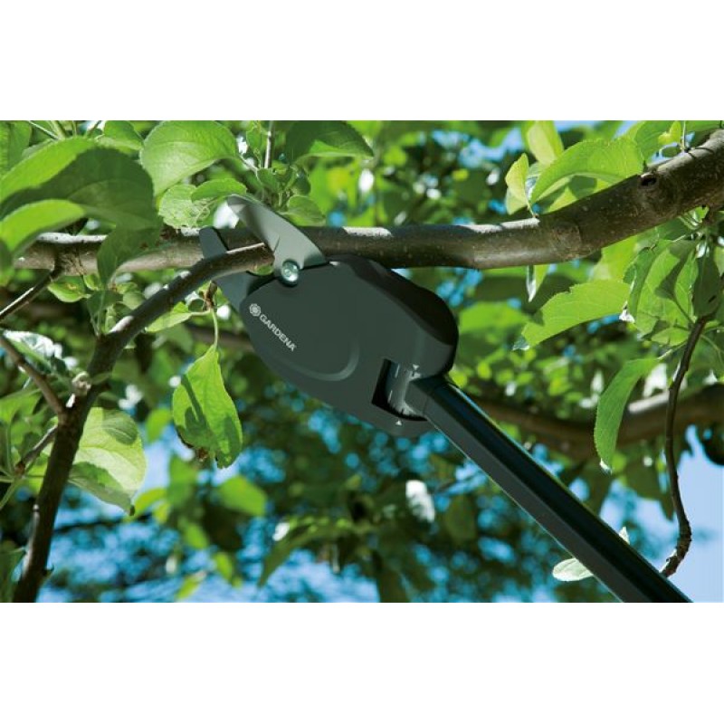 GARDENA Teleskopická strihacia kopija na stromy StarCut 410 BL, 8782-20. Ľahké a pohodlné strihanie tiež v hustých kríkoch a stromoch. Bez zachytávanie. Kompletne vo vnútri uložené tiahlo. Extra ľahká a úzka strihacia hlava. Individuálne zo zeme nastaviteľný uhol strihu (200 °) pre presné strihanie konárov v každom smere rastu. Špeciálny tvar noža drží strihaný materiál v optimálnej oblasti strihania - pre ľahký, čistý strih. Dodatočná úspora sily vďaka vnútornému kladkovému prevodu. Precízne brúsené nože s nepriľnavým povlakom. ažné puzdro so stopkou proti skĺzavaniu. Prídavné T-držadlo pre ešte väčší dosah (celkový dosah s užívateľom cca 3,5 m). Extra ľahká a stabilná hliníková tyč. Bezpečnostný uzáver. Ochrana nožaCelková dĺžka: 230 -410 cm