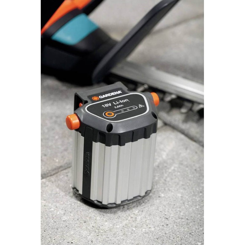 GARDENA vymeniteľný akumulátor Li-Ion 18 V / 2.6 Ah je silný a spoľahlivý zdroj energie, určený pre nové akumulátorové výrobky GARDENA.Akumulátor sa extrémne ľahko udržuje, je možné dobíjať ho kedykoľvek, takže je neustále pripravený pre použitie. Dobíjať bez pamäťového efektu je možné kedykoľvek. Vymeniteľný akumulátor má nízku hmotnosť približne 460 g a kapacitu 18 V / 2.6 Ah.