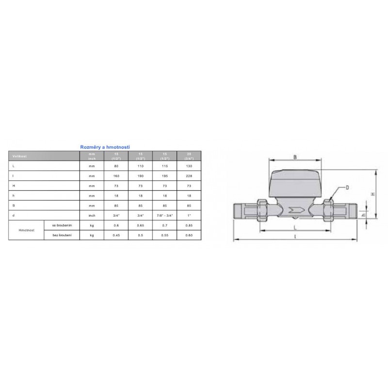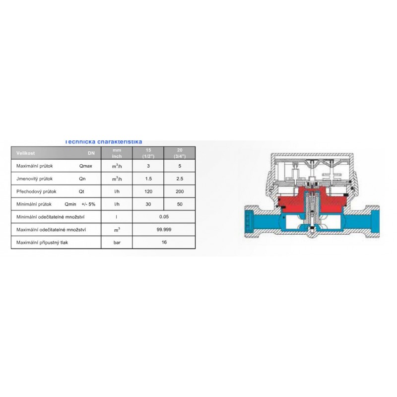 Menovitý prietok: Qn = 1,5 m3 / h (1/2 "), 2,5 m3 / h (3/4")