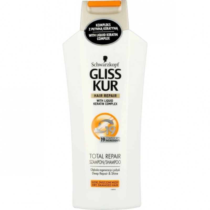 GLISS KUR Total Repair 19 regeneračný šampón 400 mlNajintenzívnejšie starostlivosť pre suché a poškodené vlasy Redukuje lámavosť vlasov až o 90% Pre poddajné, zdravo sa lesknúce vlasy.