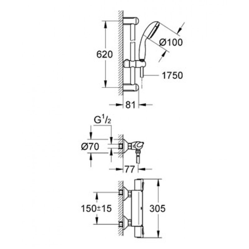 GROHE Grohtherm 1000 termostatická sprchová batéria, DN 15, chróm 34151001set obsahuje: