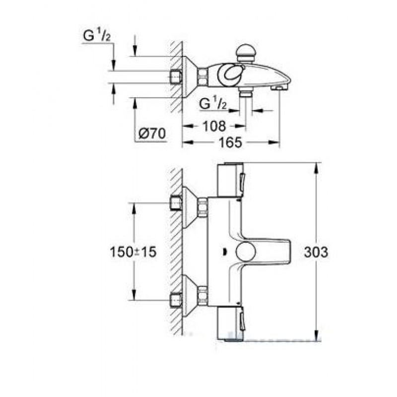 GROHE Grohtherm 1000 termostatická vaňová batéria, DN 15, chróm 34155000- Nástenná montáž