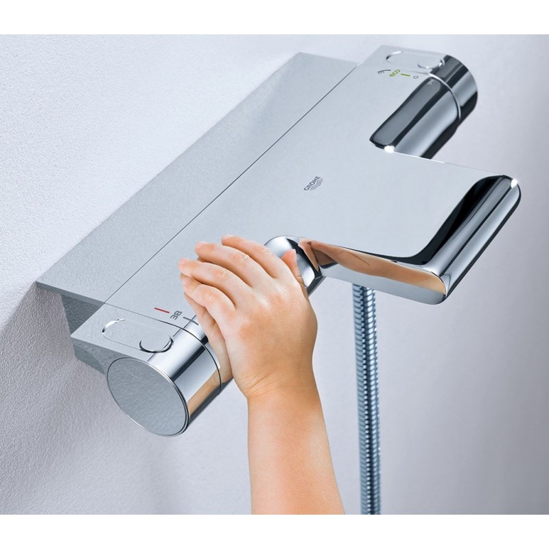 Pýši sa lepšou technológiou pre väčšiu bezpečnosť, účinnosť a komfort sprchovania, novým dizajnom s ergonomickým tvarom a estetickým prietokom vody, rovnako ako funkčným zásobníkom - Nový Grohtherm 2000 je moderným riešením pre vane a sprchy ako vizuálne, tak prakticky. Jeho elegantný, strohý vzhľad zlepší dekor každej kúpeľne. Dobre premyslený a intuitívne, spája všetky výhody termostatu s perfektným vodným zážitkom.