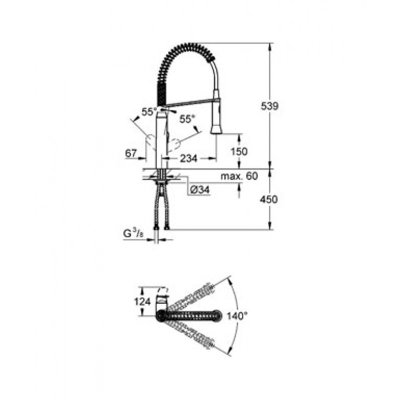 otočný uhol 140 °