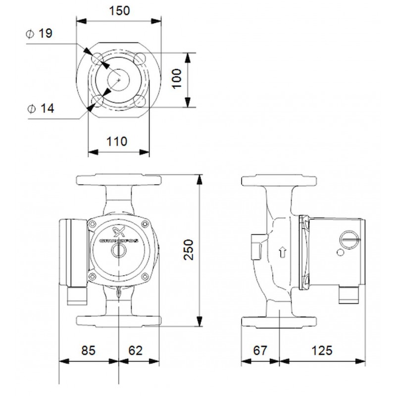 Grundfos čerpadlo obehové UPS 40-50 FN 250, PN6/10, 1x230V, 50Hz 95906422