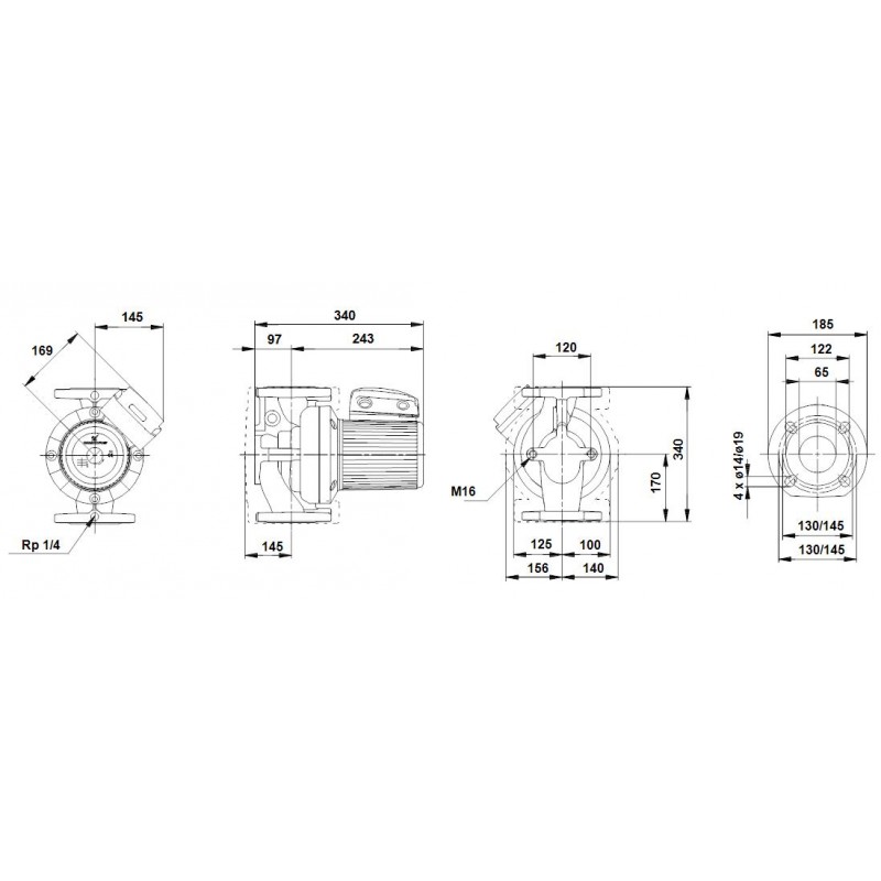 Vzdialenosť medzi sacím a výtlačným hrdlom: 340 mm