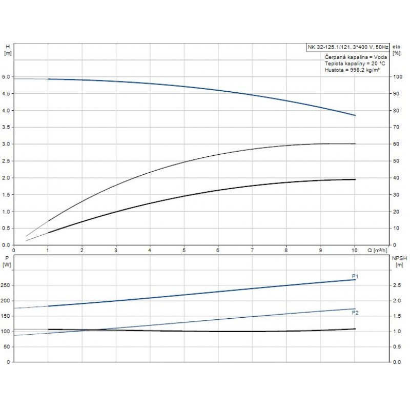 Údaje čerpadla pre dané otáčky: 1400 ot / min