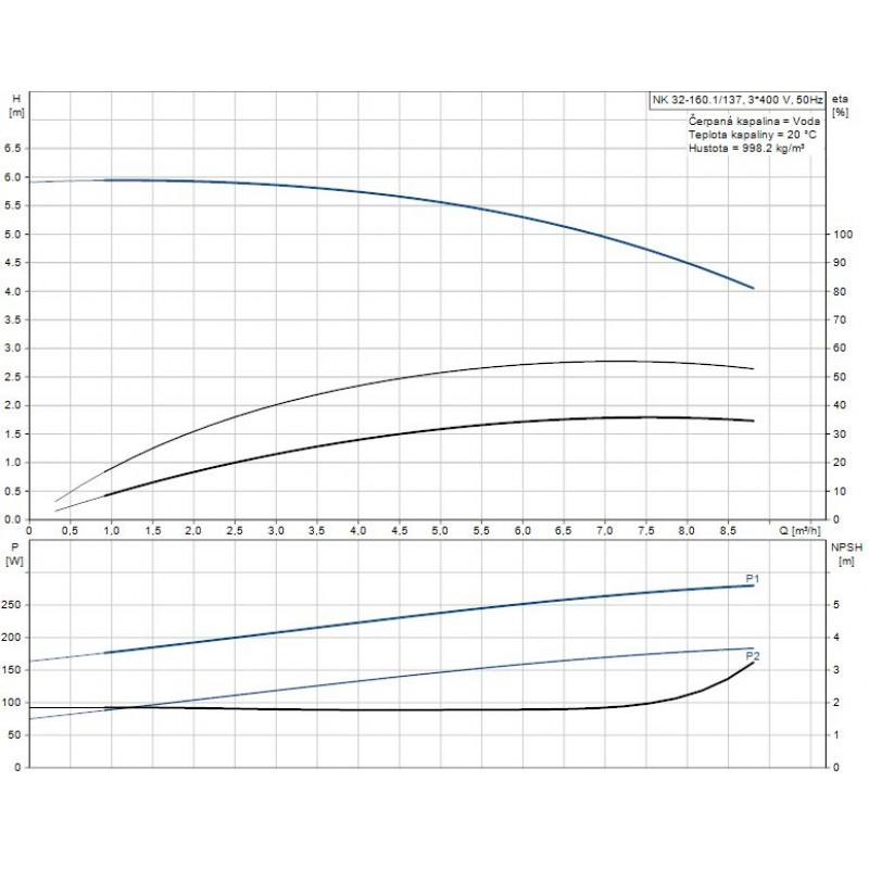 Údaje čerpadla pre dané otáčky: 1400 ot / min