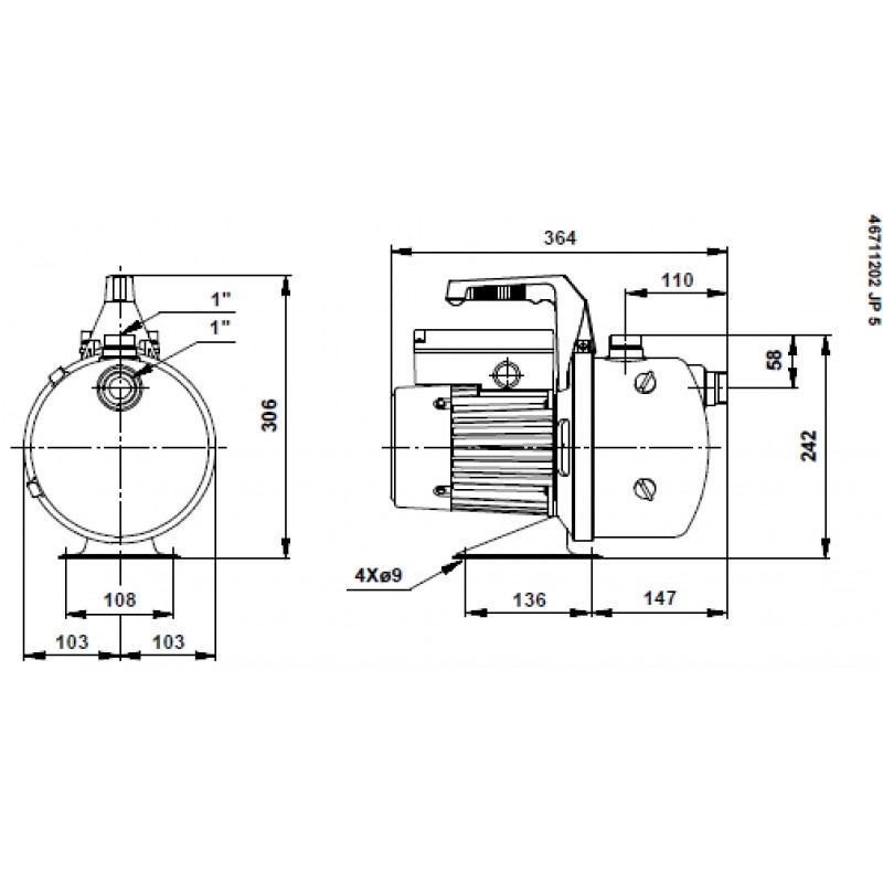 Grundfos Samonasávacie čerpadlo JP5 + Tlaková riadiaca jednotka PM 1 s káblom 98163250