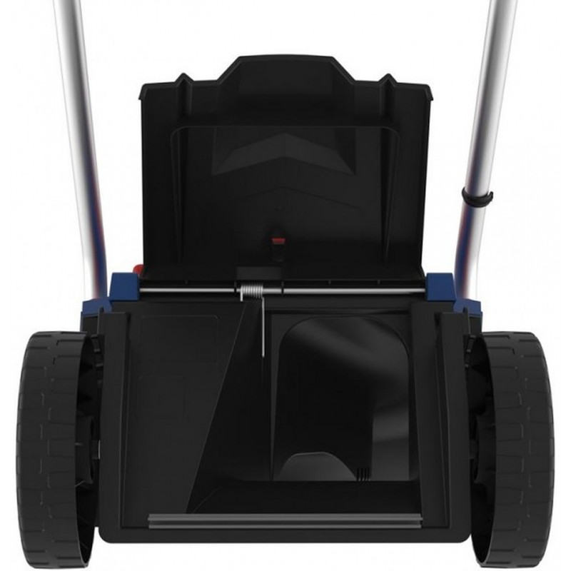 Konštrukcia: šasi kosačky z tvrdeného plastu, dvojkomorový slot (spoločný pre obe batérie), výškovo nastaviteľná riadiaca rukoväť, 30 l zberný kôš, umelohmotná pojazdové kolesá (priemer: predné 150 mm, zadné 180 mm).