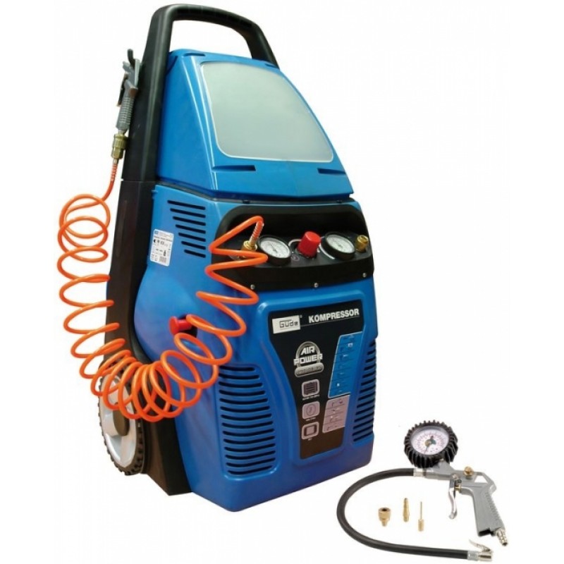 GÜDE AIRPOWER 290/08/35 Kompresor 50088Praktický bezolejový kompresor, určený pre servisné práce (› vyfukovanie nečistôt z počítačov / elektrických vedení a pod.) Alebo na domáce použitie (› plnenie lôpt / pneumatík, sponkovanie, nástrek airbrush atď.). Jednoduché nastavenie pracovného tlaku priamo na ovládacom paneli kompresora (› otočný regulátor, rozsah: 0-8 bar). Konštrukcia: elektromotor 2,2 kW (› 2.850 ot., Typ prevádzky: S3 / 25%), 1-piestový / samomazný, remeňový pohon. Tlaková nádoba: 35 l, ventil na vypúšťanie kondenzátu. Príslušenstvo: ofukovacia pištoľ, pneu hustilka, špirálová hadica 5 m, adaptéry pre nafukovanie lôpt / matracov / pneumatík. Celkové rozmery (d x š x v): 440 x 480 x 890 mm, hladina akustického výkonu LWA: 97 dB (A), elektrická ochranná trieda: IP 20.