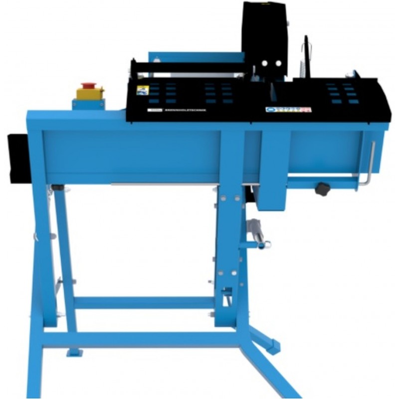 • Konštrukcia: skladací oceľový rám, 2dielny kryt pílového kotúča, podávač s ochranným krytom a predlžovacím nástavcom (600 mm), výsuvný doraz pre jednotnú dĺžku polien.