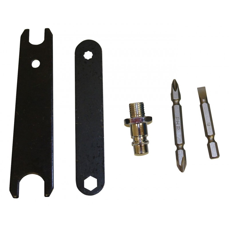 K pistolovému skrutkovača dostanete 2 predĺženej obojstranné skrutkovacie bity a náhradné pružinu.