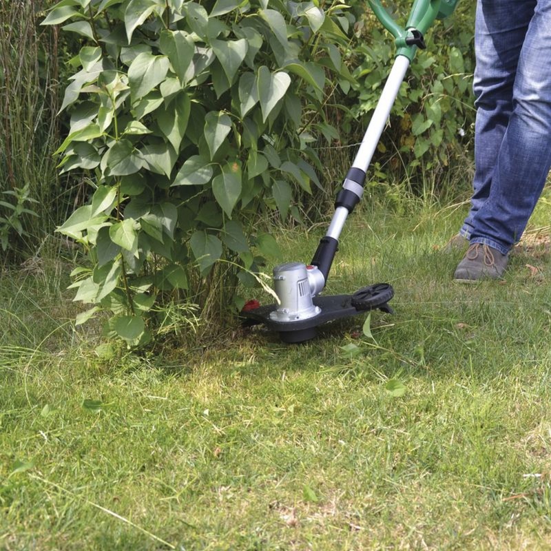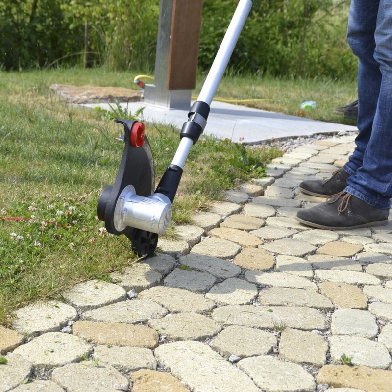Polohovateľná žacie hlava, teleskopická vodiaca tyč pre pohodlné kosenie trávy vo vzpriamenom postoji (› rozsah dĺžkového nastavenia: