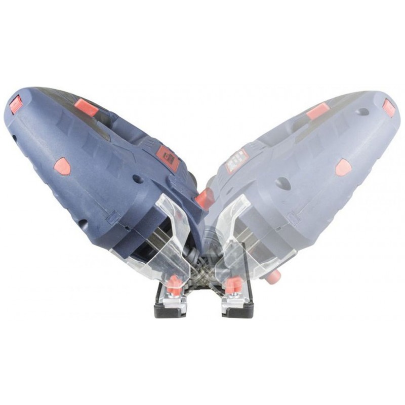 Konštrukcia: rýchloupínacie nástrojový držiak, pozdĺžny doraz, klzné pätka (> odnímateľná; ochrana povrchov pred poškriabaním), ergonomicky tvarovaná rukoväť s tlmiacou vložkou a indikátorom napätia, prípojka odsávania.