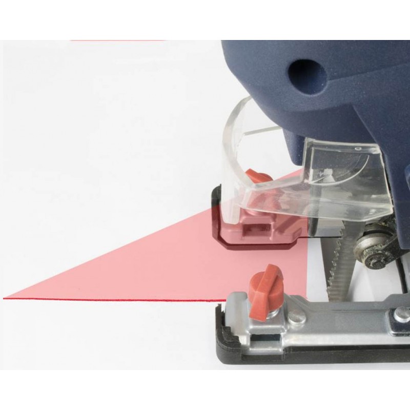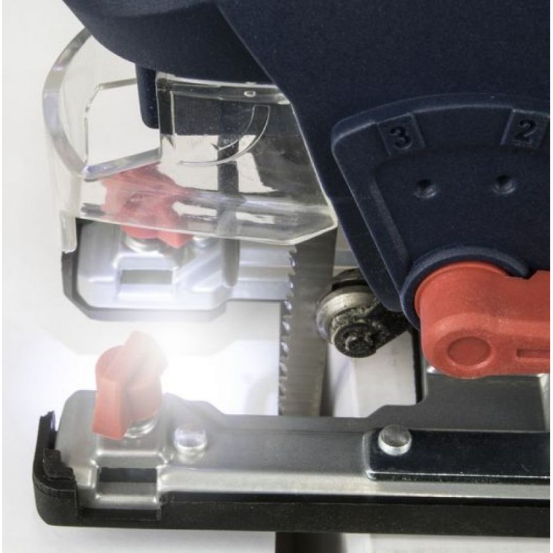 Presné nastavenie zdvihov podľa druhu rezaného materiálu (> 6stupňovej; rozsah: 800 - 3.000 min.-1); 4 polohový nastavenie predkmitu pílového listu; uhlové rezy (> naklápacie základová doska; 2 x 45 °).
