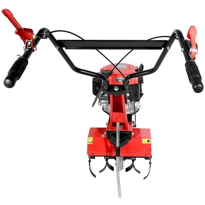 Benzínový záhradný kultivátor GF 2436.1 spája v sebe silný výkon s dômyselným dizajnom. Hlavnou súčasťou tohto záhradného pomocníka je 4-taktný motor Power-Engine, ktorý zabezpečuje výkonné a spoľahlivé pracovné procesy. Špeciálny tvar nožov zaručuje mimoriadne šetrné a zároveň účinné obrábanie pôdy. Široká rukoväť uľahčuje manipuláciu a zabezpečuje prácu bez únavy. Otočné vodiace koleso s priemerom 150 mm umožňuje presnú manipuláciu, zatiaľ čo samočinné spínanie zaručuje maximálnu bezpečnosť pri práci. Záhradný kultivátor sa dá jednoducho uviesť do prevádzky vďaka reverznému štartéru a nože vyrobené z vysokokvalitnej ocele odolnej proti opotrebovaniu zabezpečujú dlhú životnosť a odolnosť kultivátora. Ľahký záhradný kultivátor s výkonným 4-taktným motorom Power-Engine. Špeciálne tvarované nože na šetrné a zároveň efektívne obrábanie pôdy. Na prípravu pôdy menších až stredne veľkých plôch. Na zapracovanie mulčovacieho materiálu, rašeliny, piesku, hnoja alebo kompostu do pôdy.