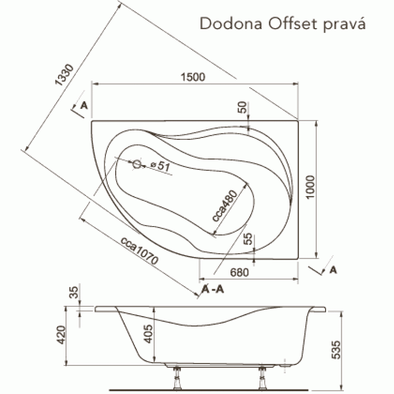 Rohová vana ve velikosti 120x120 nabízí možnost sprchování v rohové výseči. Zato úsporná polorohová veze dodony offset nabízí na malém prostoru komfort rohové vany. Ladné křivky a praktické sezení v rohu i na okraji vany oceníte při každé koupeli.