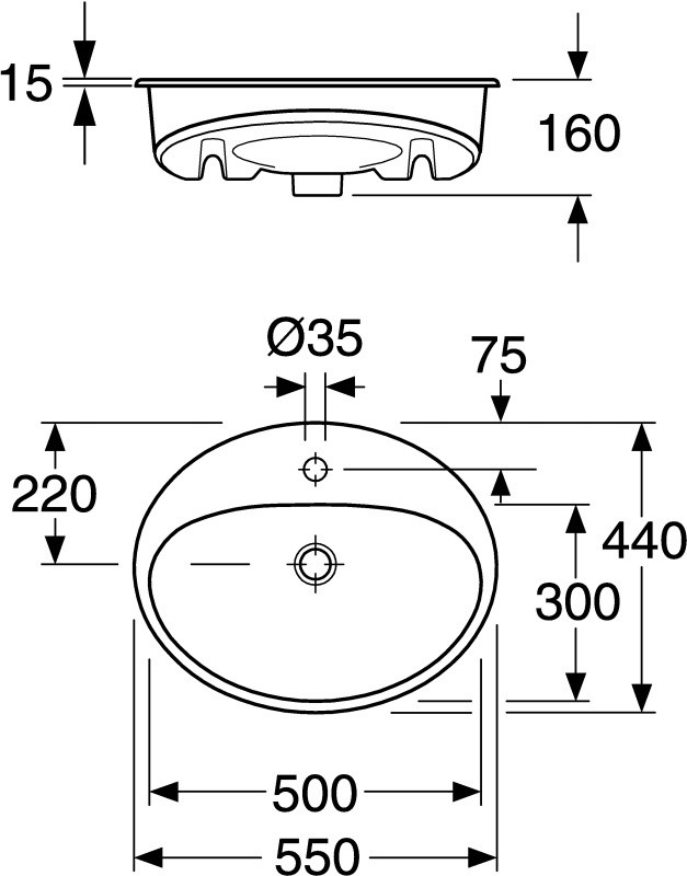 Gustavsberg NAUTIC 55 umývadlo zápustné, biela E + 55x44 555599R1