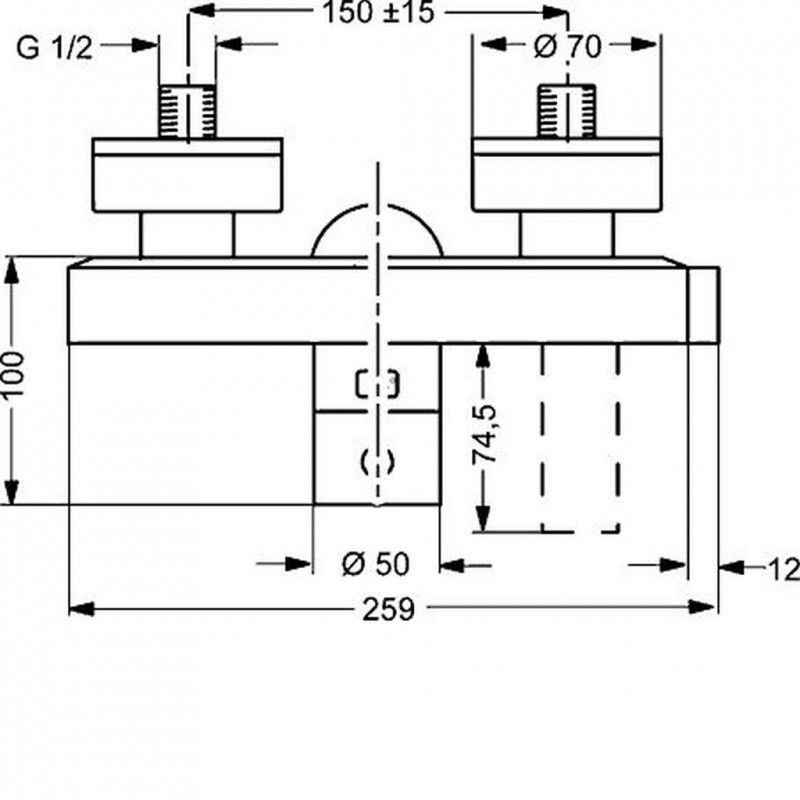 (-) rozteč: 150 ± 15 mm