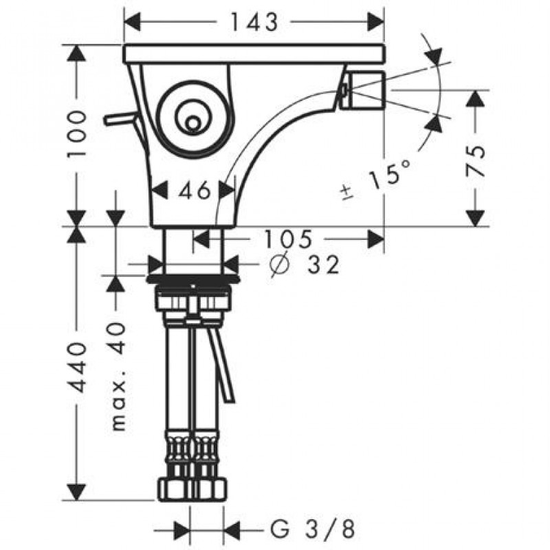 Hansgrohe AXOR Massaud Páková bidetová batéria DN15, chróm 18210000- Perlátor s guľovým kĺbom